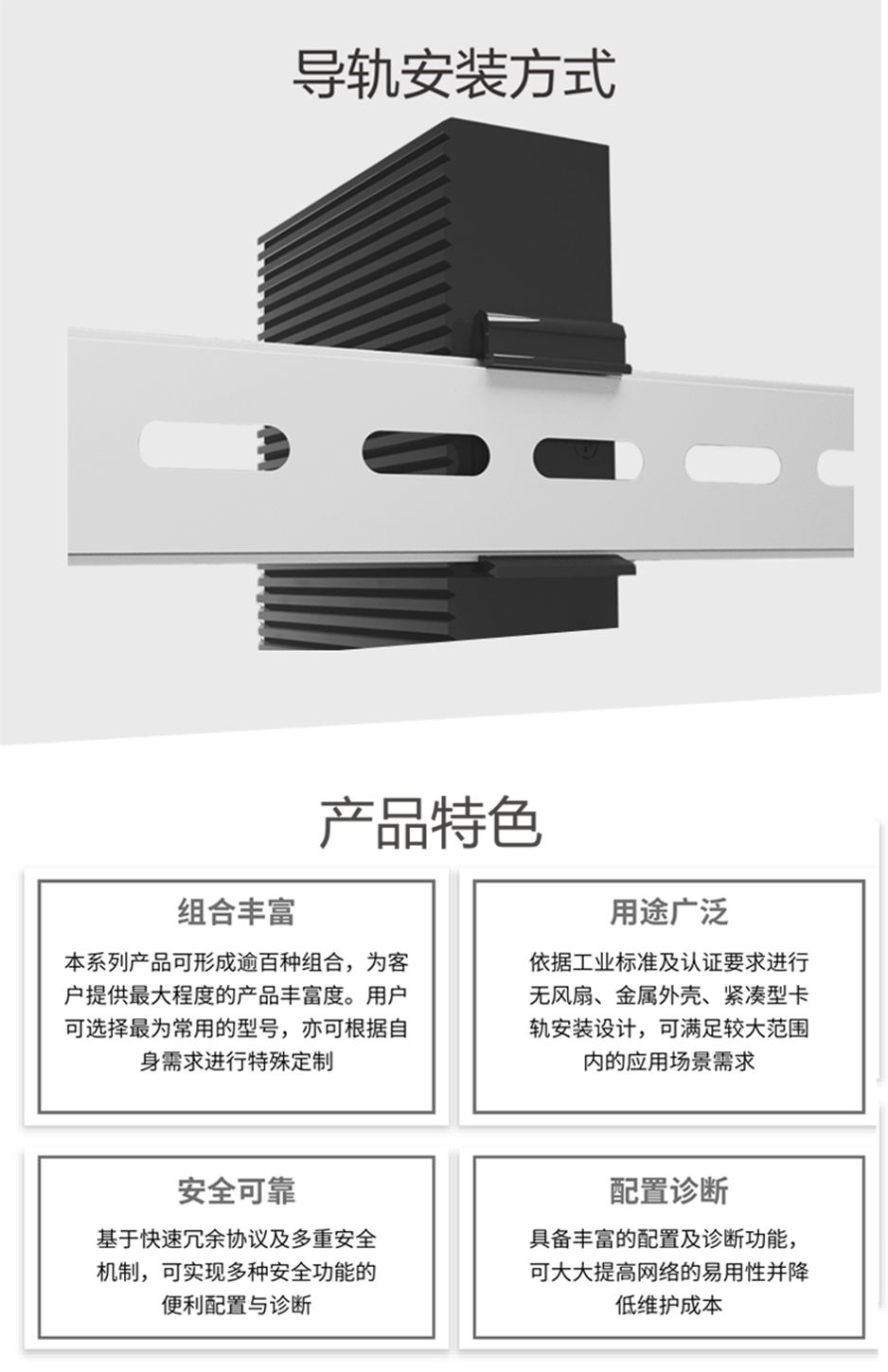 工業級(NT品牌)非網管1百光2百電,SFP接口,導軌式-DC12~52V供電-寬溫(-40℃-85℃)。默認不含AC電源適配器和不含光模塊。 |