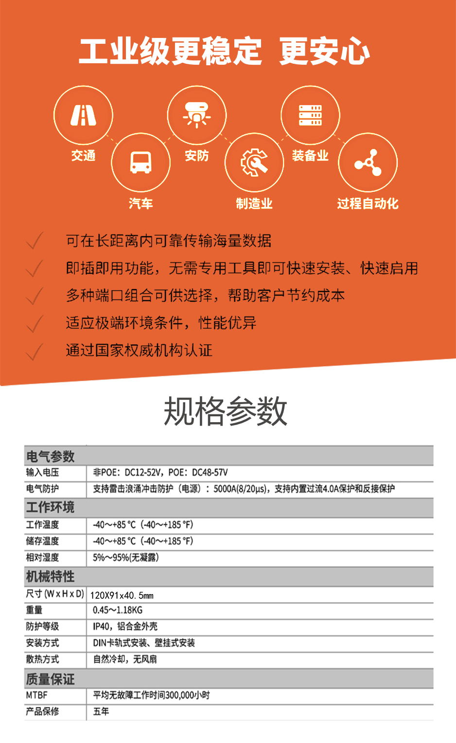 輸入電壓:DC48~57V(雙電源冗余備份) 接入端子:鳳凰端子 支持雙電源冗余 支持內置過流4.0A保護 支持反接保護 |