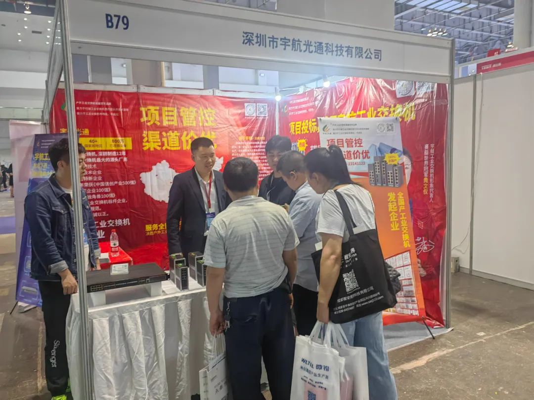 宇航,作為全國產(chǎn)工業(yè)交換機的發(fā)起單位,在展會現(xiàn)場,我們不斷的向大家推廣全國產(chǎn)工業(yè)交換機,介紹全國產(chǎn)工業(yè)交換機的卓越性能以及“免費試用”的用戶體驗模式,在展會現(xiàn)場引起轟動,成為展會焦點!