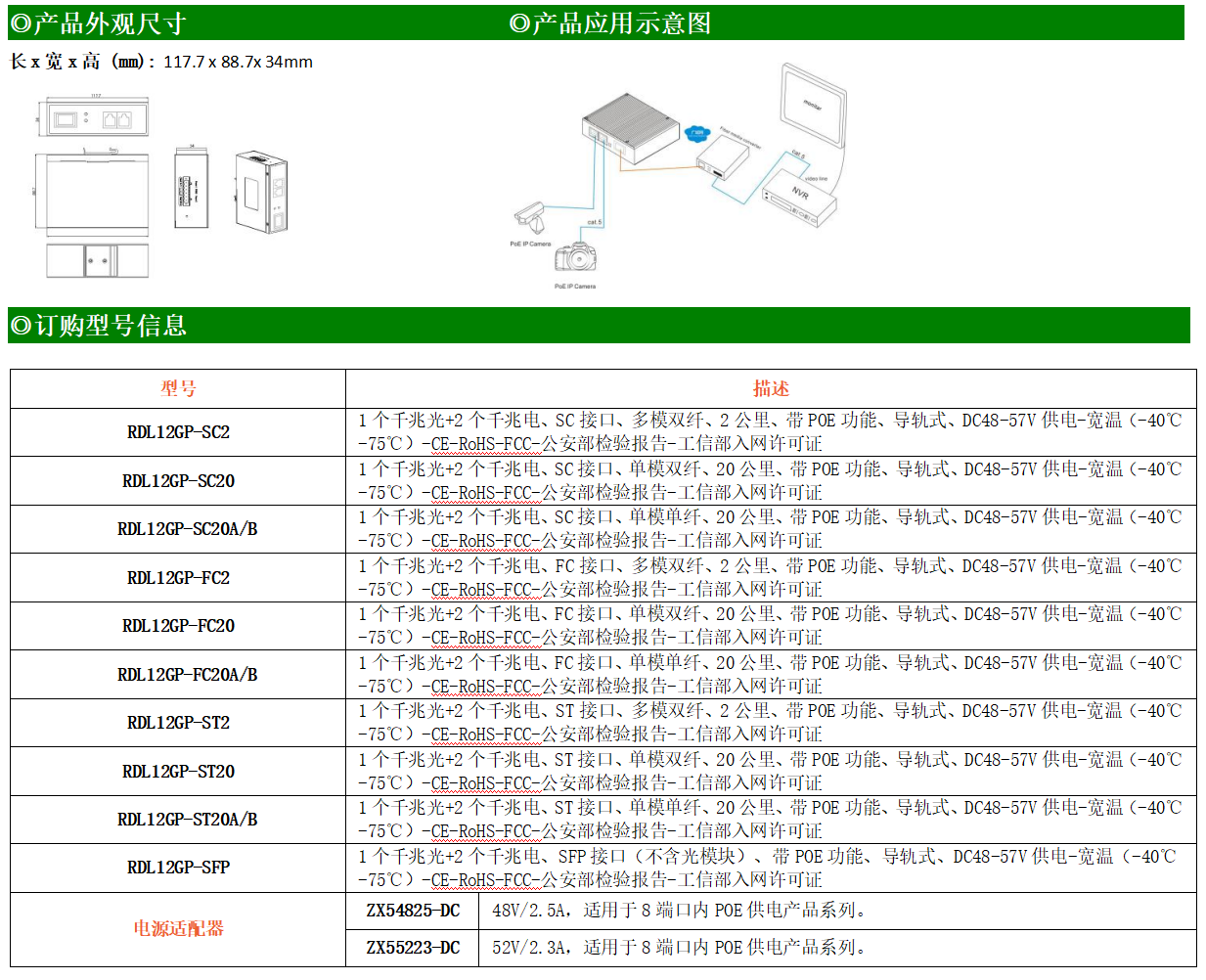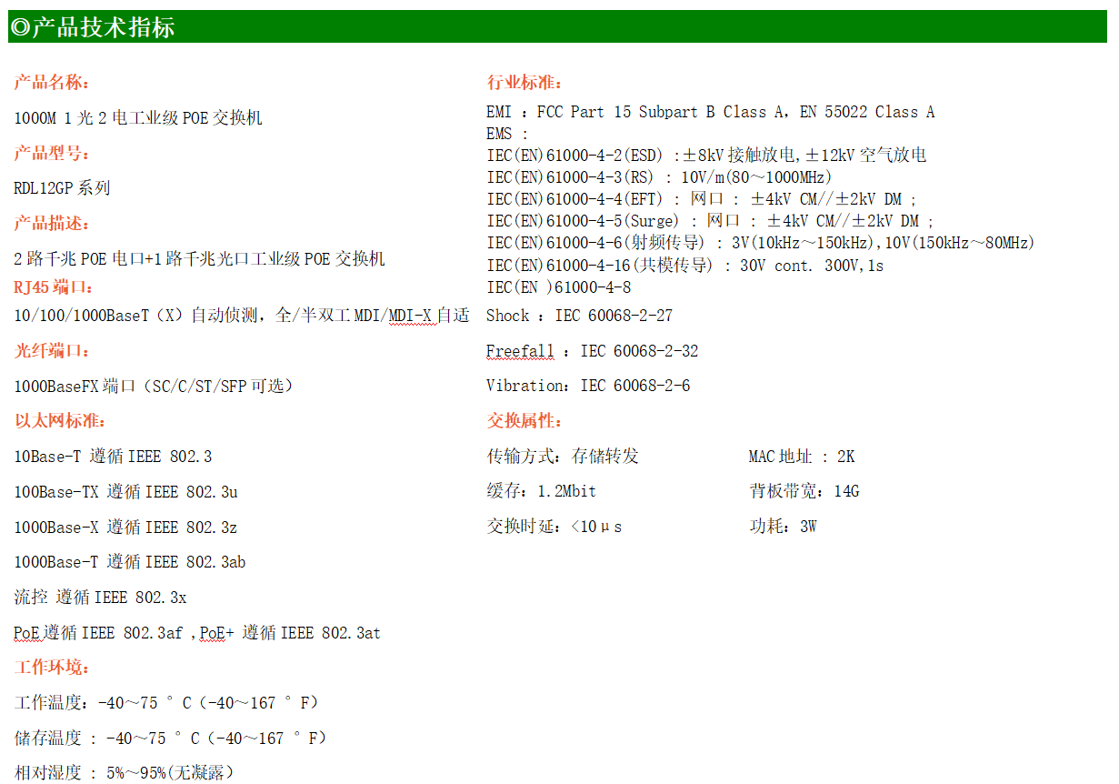 2路千兆POE電口+1路千兆FX光口工業(yè)級(jí)以太網(wǎng)POE交換機(jī),支持2個(gè)10/100/1000Base-TX電口和1個(gè)1000Base-X光口。產(chǎn)品符合FCC、CE、ROHS標(biāo)準(zhǔn)。RDL12GP系列交換機(jī)具有-40℃~75℃的工作溫度,具有超強(qiáng)的堅(jiān)固度能適應(yīng)各種嚴(yán)苛環(huán)境,也可以非常方便的安置在空間緊湊的控制箱中。導(dǎo)軌的安裝特性、寬溫操作及擁有IP40防護(hù)等級(jí)的外殼及LED指示燈,使RDL12GP成為一個(gè)即插即用的工業(yè)級(jí)設(shè)備,為用戶的以太網(wǎng)設(shè)備聯(lián)網(wǎng)提供可靠、便捷的解決方案。