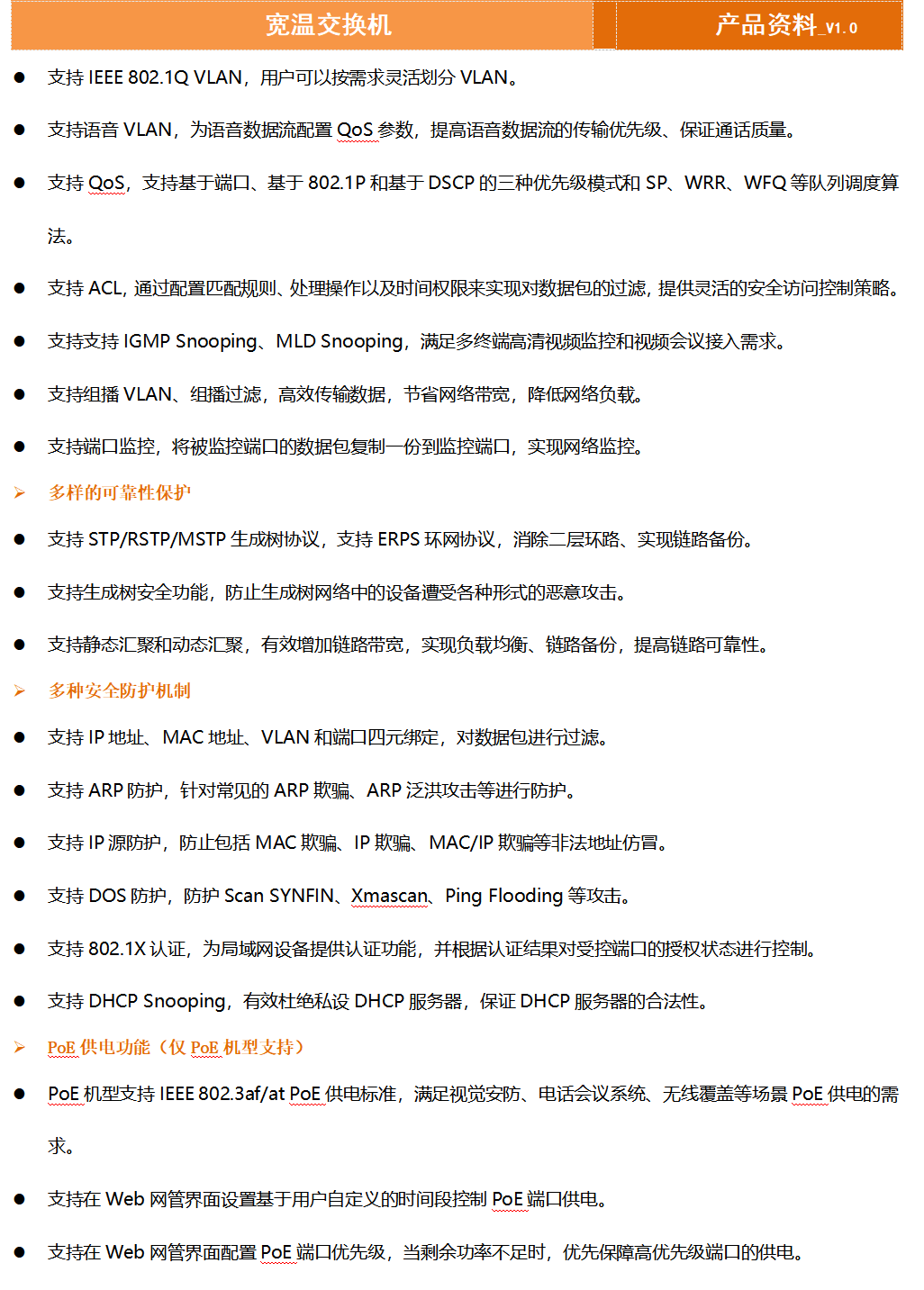 • 支持支持IGMP Snooping、MLD Snooping,滿足多終端高清視頻監控和視頻會議接入需求。