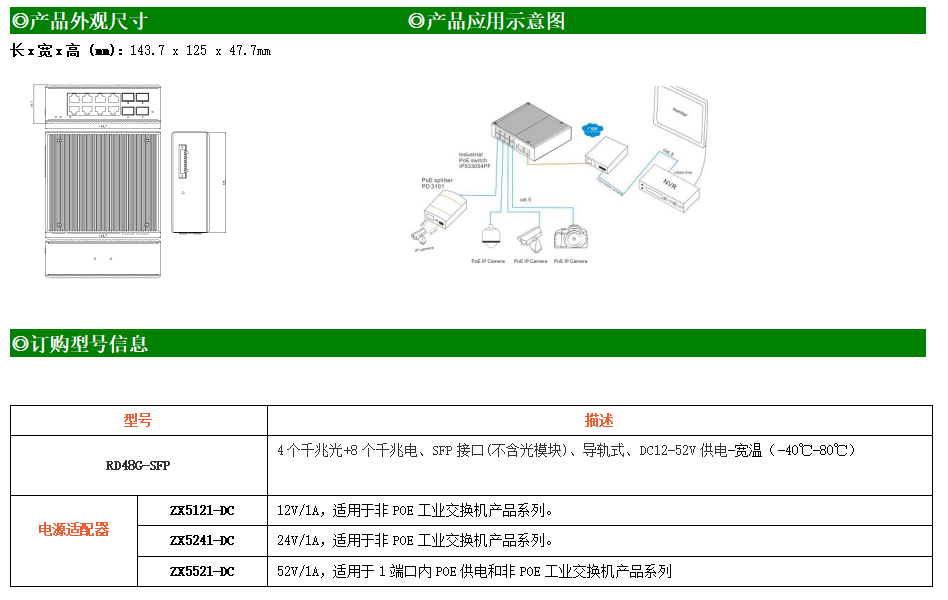 8路千兆電口+4路千兆FX光口工業(yè)級(jí)以太網(wǎng)交換機(jī),支持8個(gè)100Base-T/1000Base-TX電口和4個(gè)1000Base-X光口。產(chǎn)品符合FCC、CE、ROHS標(biāo)準(zhǔn)。RD48G交換機(jī)具有-40℃~80℃的工作溫度,具有超強(qiáng)的堅(jiān)固度能適應(yīng)各種嚴(yán)苛環(huán)境,也可以非常方便的安置在空間緊湊的控制箱中。導(dǎo)軌的安裝特性、寬溫操作及擁有IP40防護(hù)等級(jí)的外殼及LED指示燈,使RD48G成為一個(gè)即插即用的工業(yè)級(jí)設(shè)備,為用戶的以太網(wǎng)設(shè)備聯(lián)網(wǎng)提供可靠、便捷的解決方案。