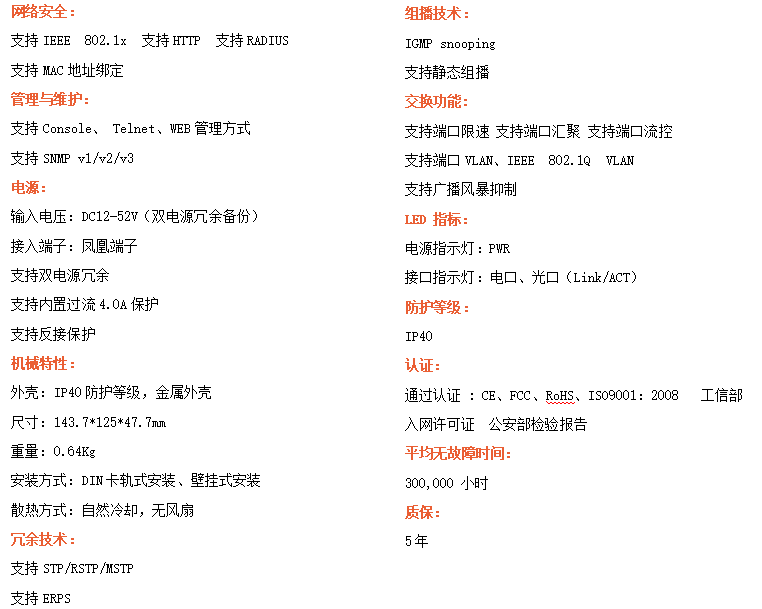 ●支持STP/RSTP/ERPS,SNMPv1/v2/v3,確保網絡安全
